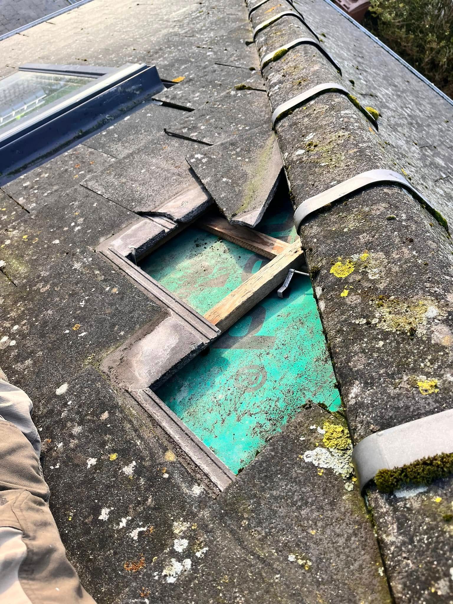 - Missing or displaced roof tiles and slates blown off by high winds