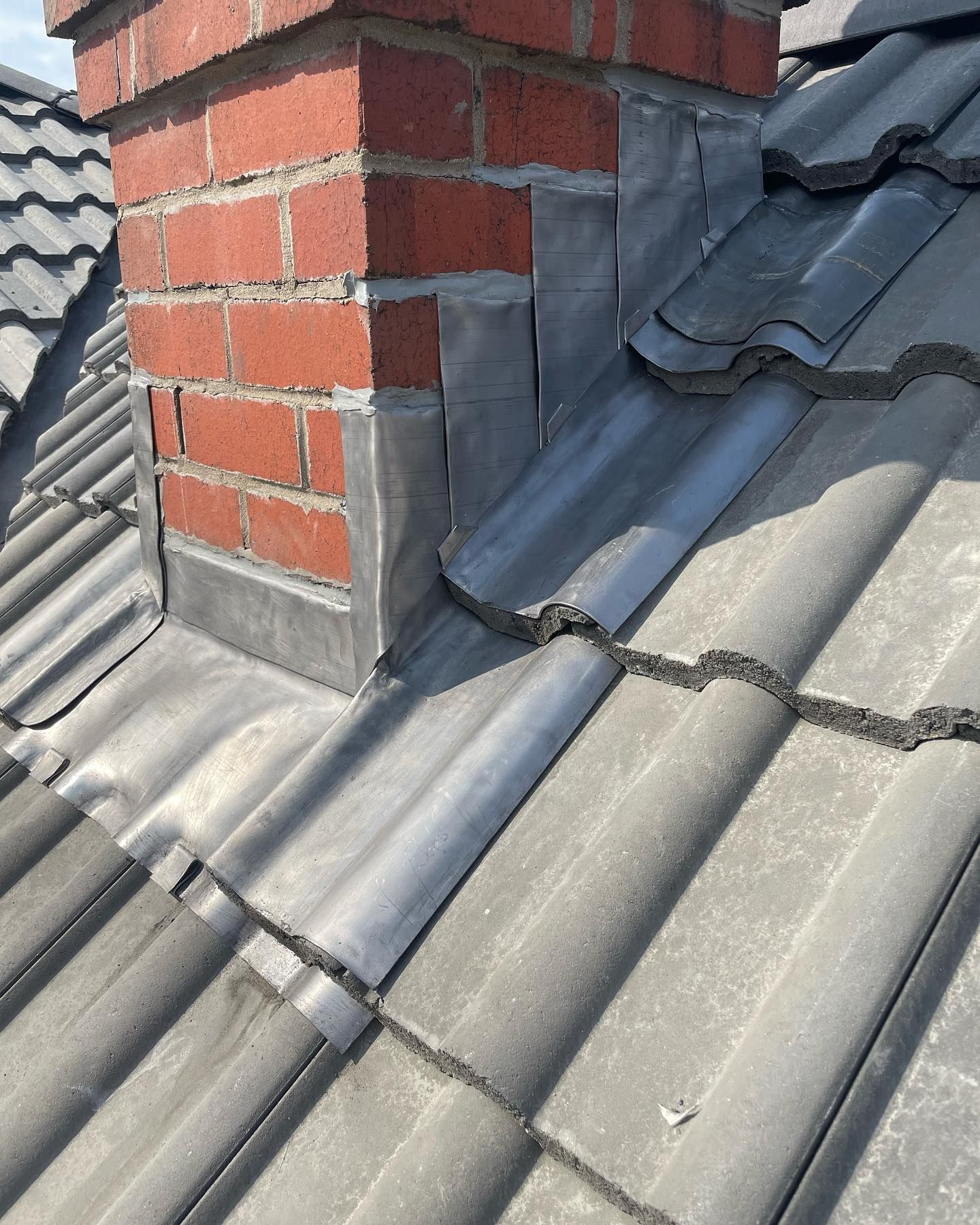 - Lead flashing at the chimney or walls should sit tight and clean, with no gaps at the edges.