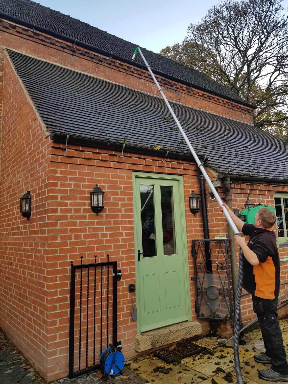 A: Yes — gutter and downpipe clearance is included as standard on all our Derby roof cleans. We remove all dislodged moss and debris from your guttering at the end of every job.