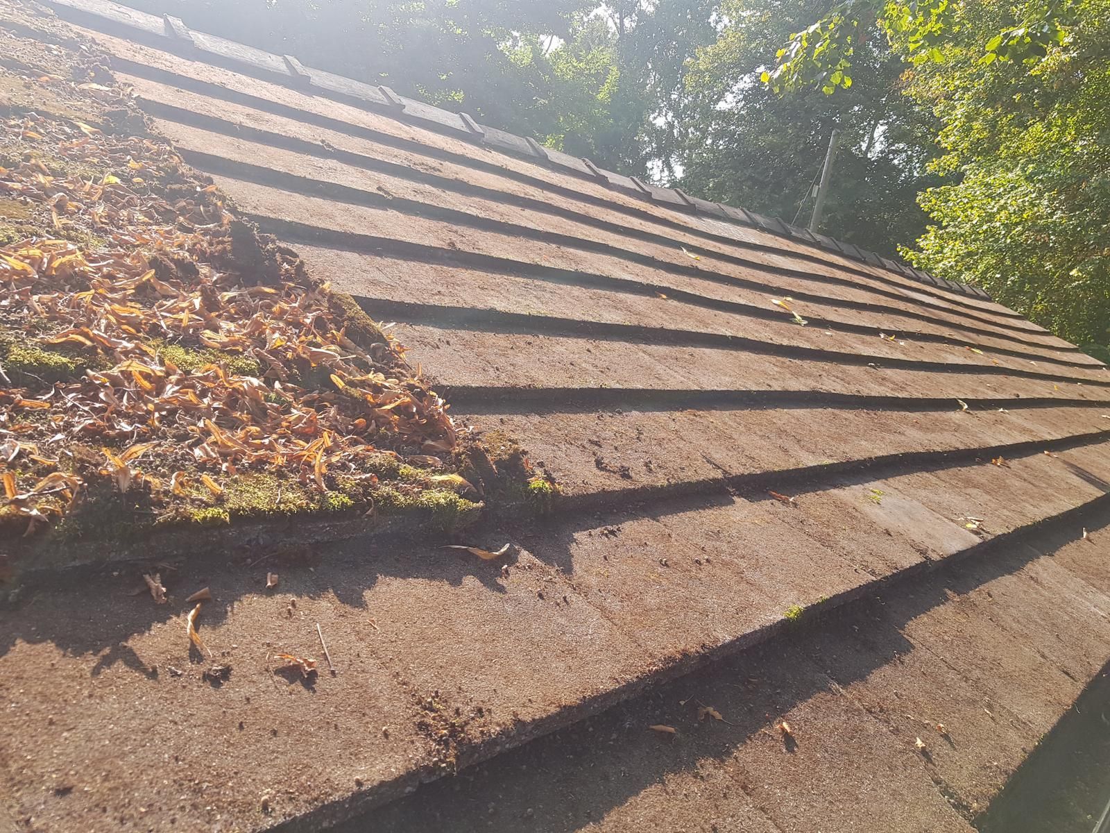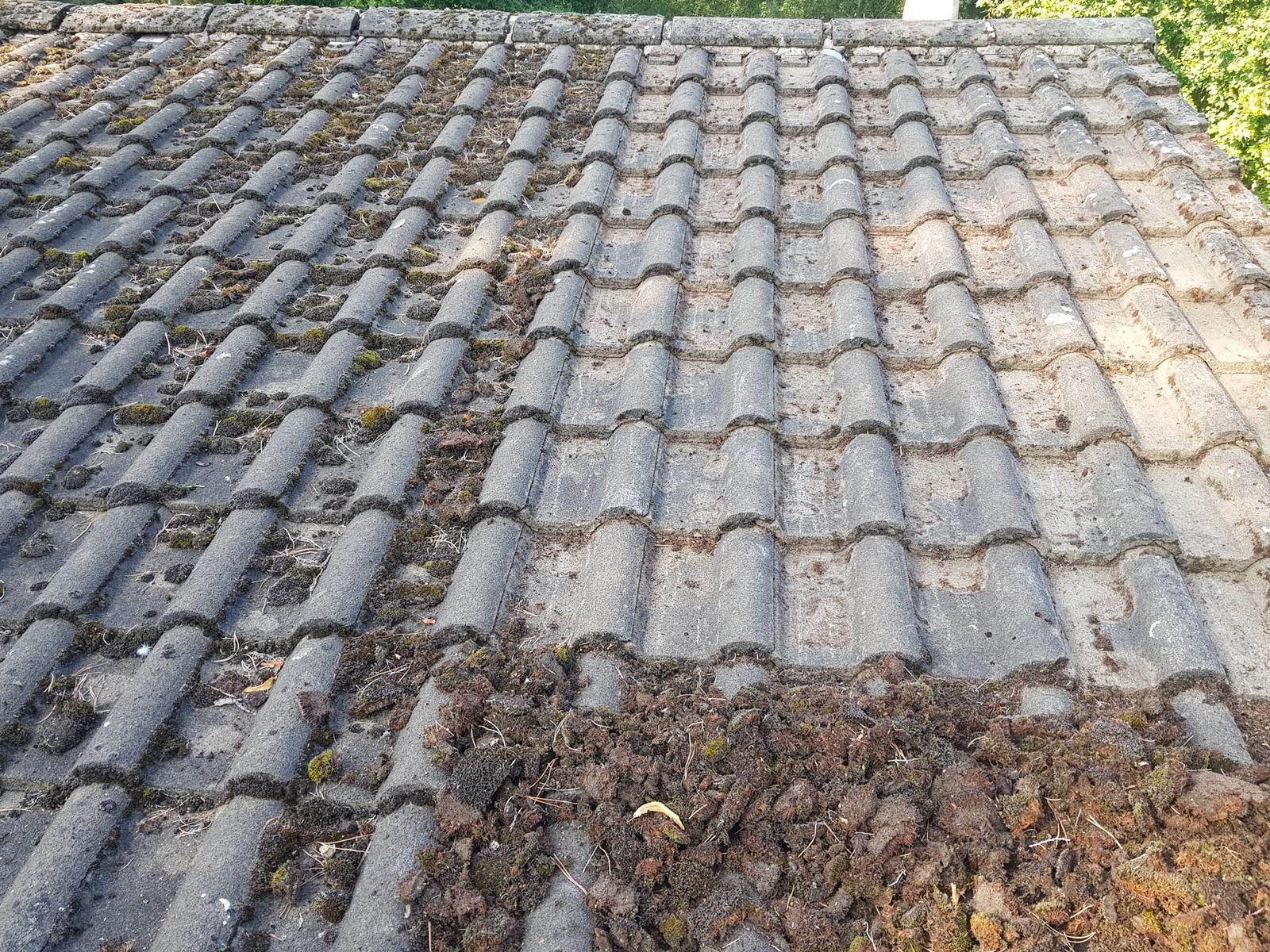 - Constantly blocked gutters — debris and moss fragments washing into downpipes