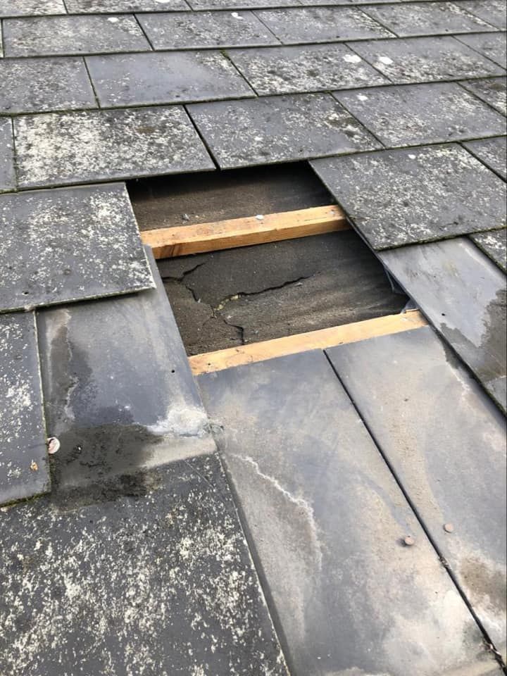 - Missing, cracked or slipped roof tiles or slates — exposing your roof to wind and rain